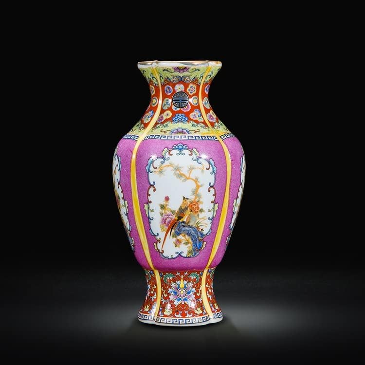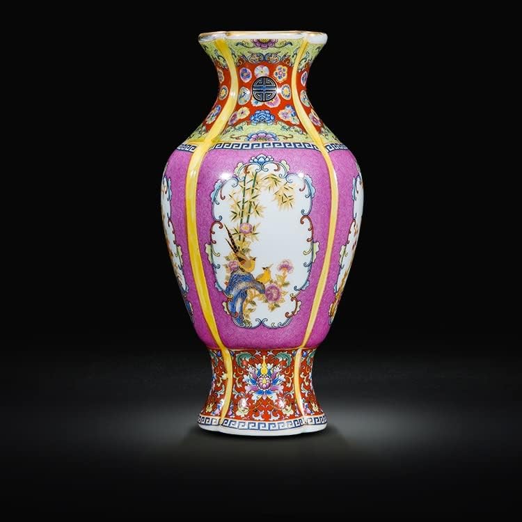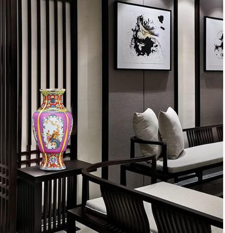 ZSEDP Jingdezhen Ceramic Antique Enamel Flower Vase Flower Arrangement Decoration Chinese Style Living Room