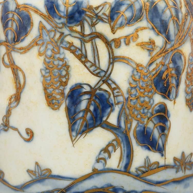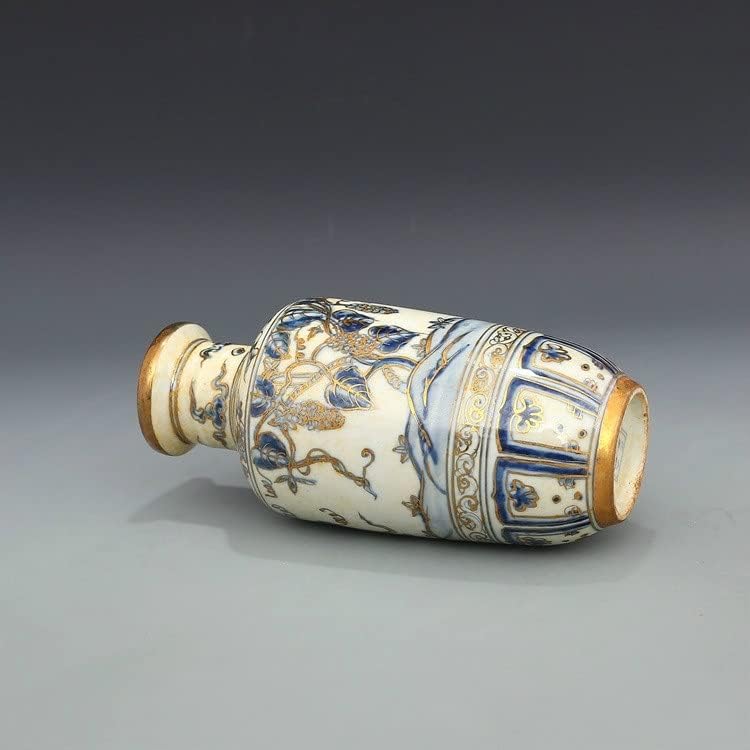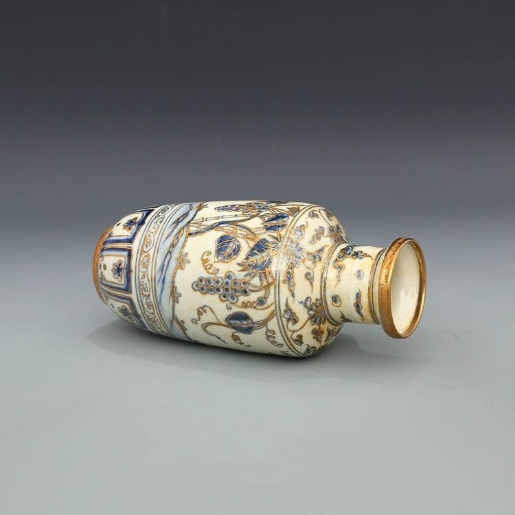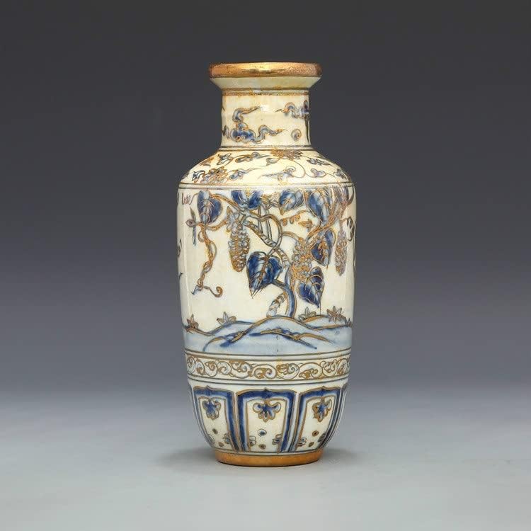 ZSEDP Antique Classic Blue and White with Gold Grape Pattern Small Ceramic Decoration Vase