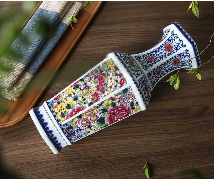 ZSEDP Jingdezhen Ceramic Antique Enamel Flower Vase Flower Arrangement Decoration Chinese Style Living Room