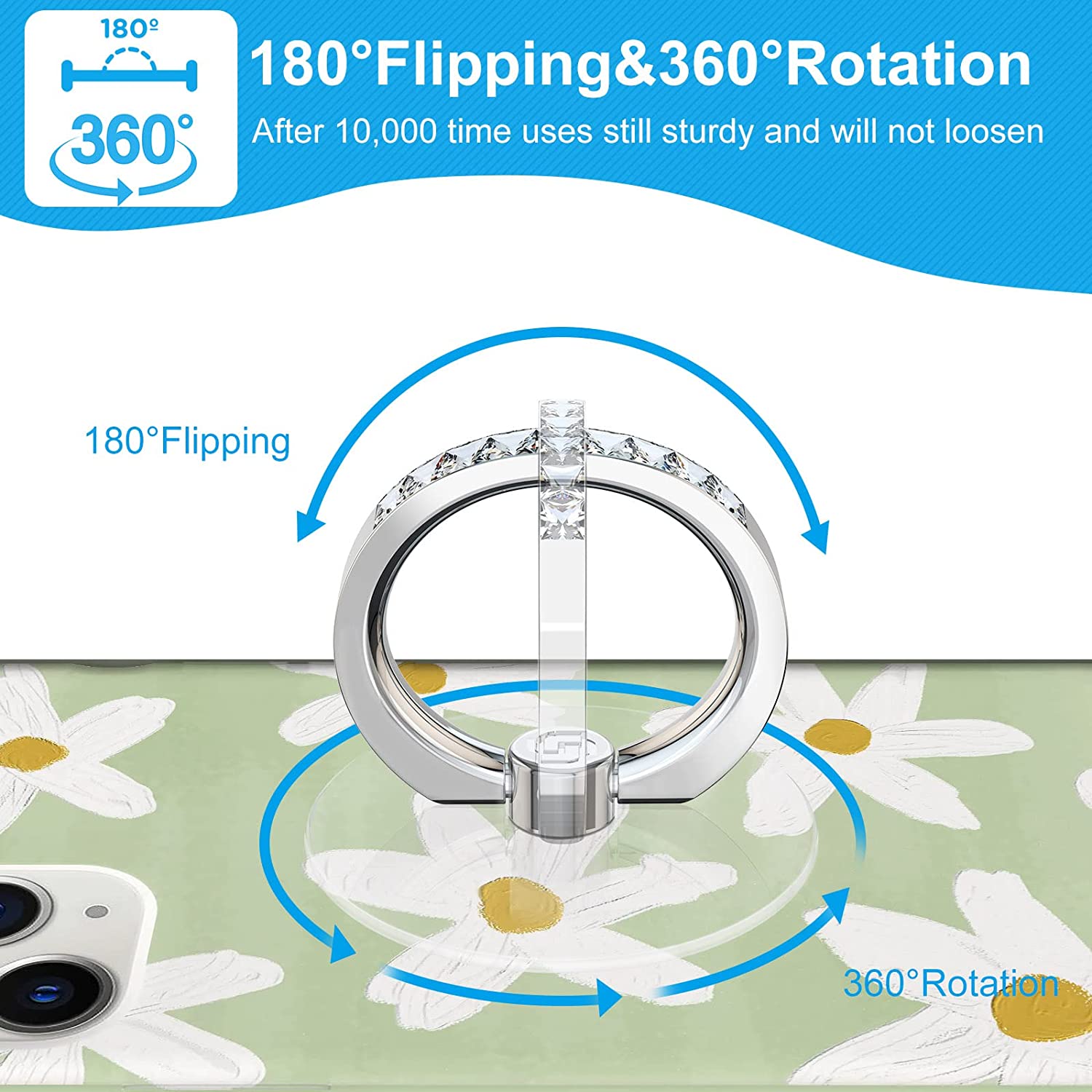 • Free Rotation: 360°Rotation and 180°Flip fold to help you adjust your phone, different viewing angles to reading, watch videos. Size: round diameter 1.4 inches.