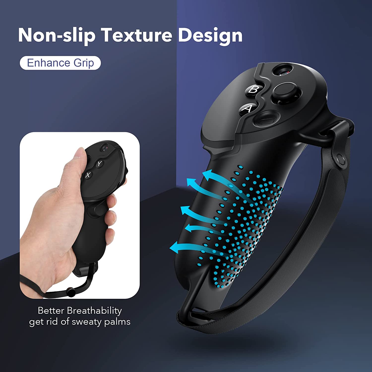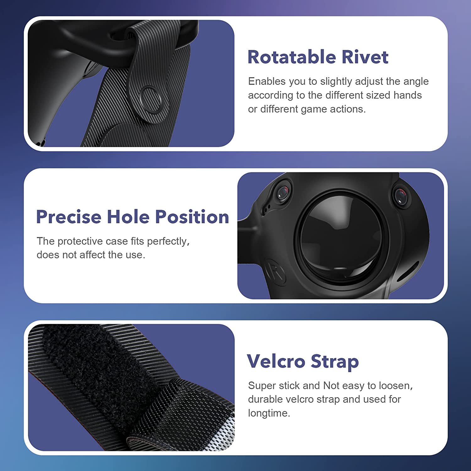 • What's Included: This controller grips cover is specially designed for Meta Quest pro. Product includes a pair of handle covers and two leather adjustment straps and 1 piece len cover.