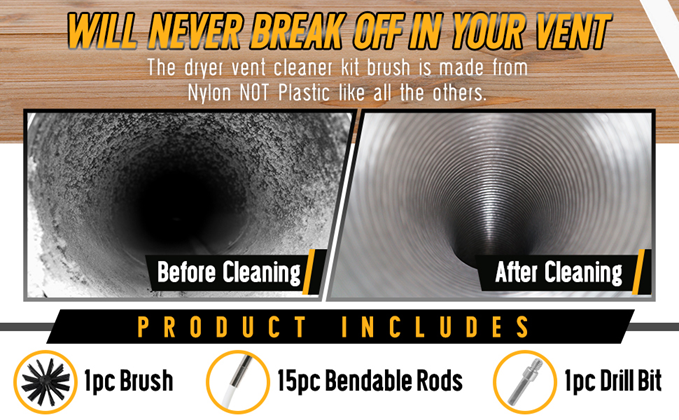 - The dryer vent cleaner kit brush is made from Nylon NOT Plastic like all the others. The (15) attachment rods screw together with ease