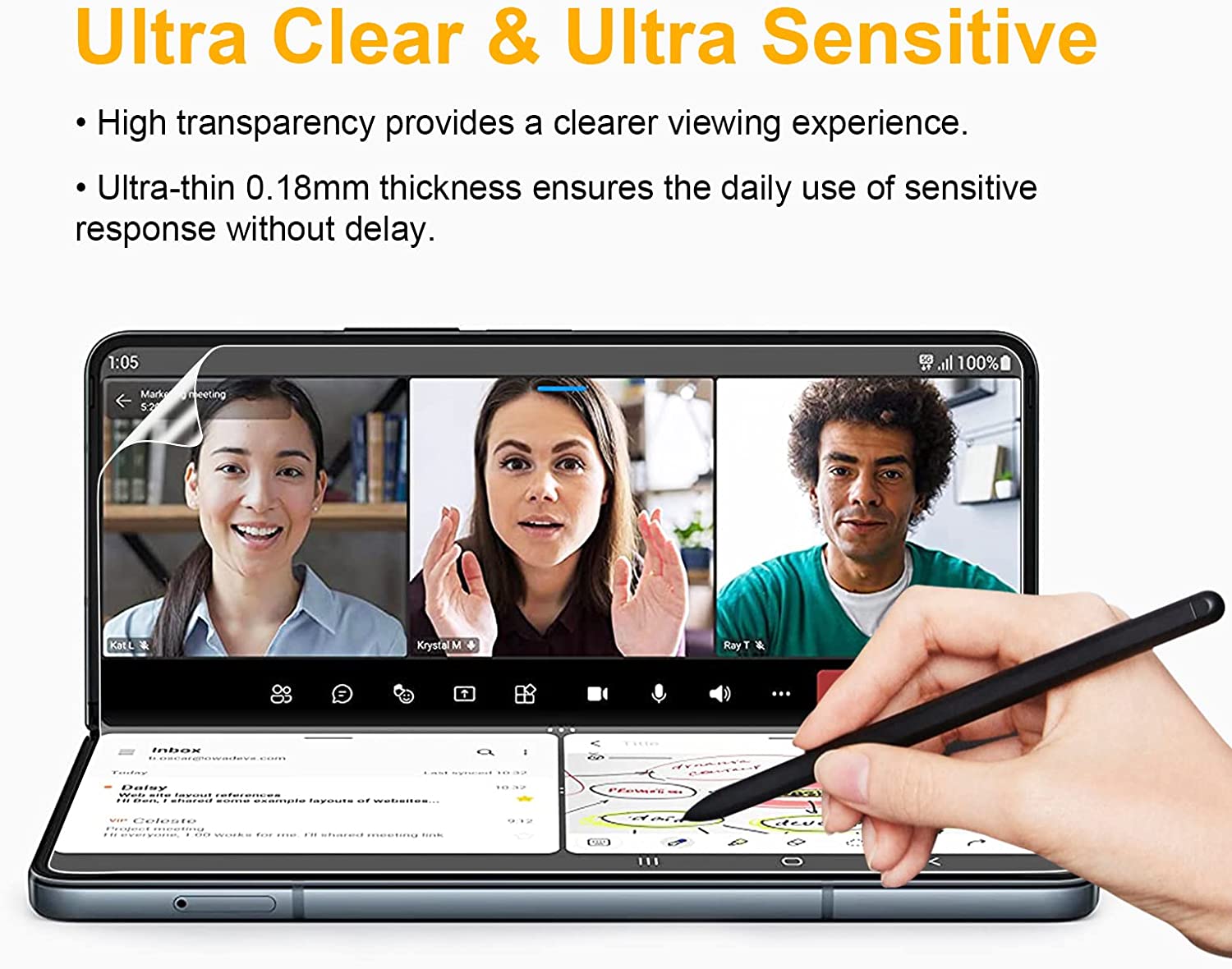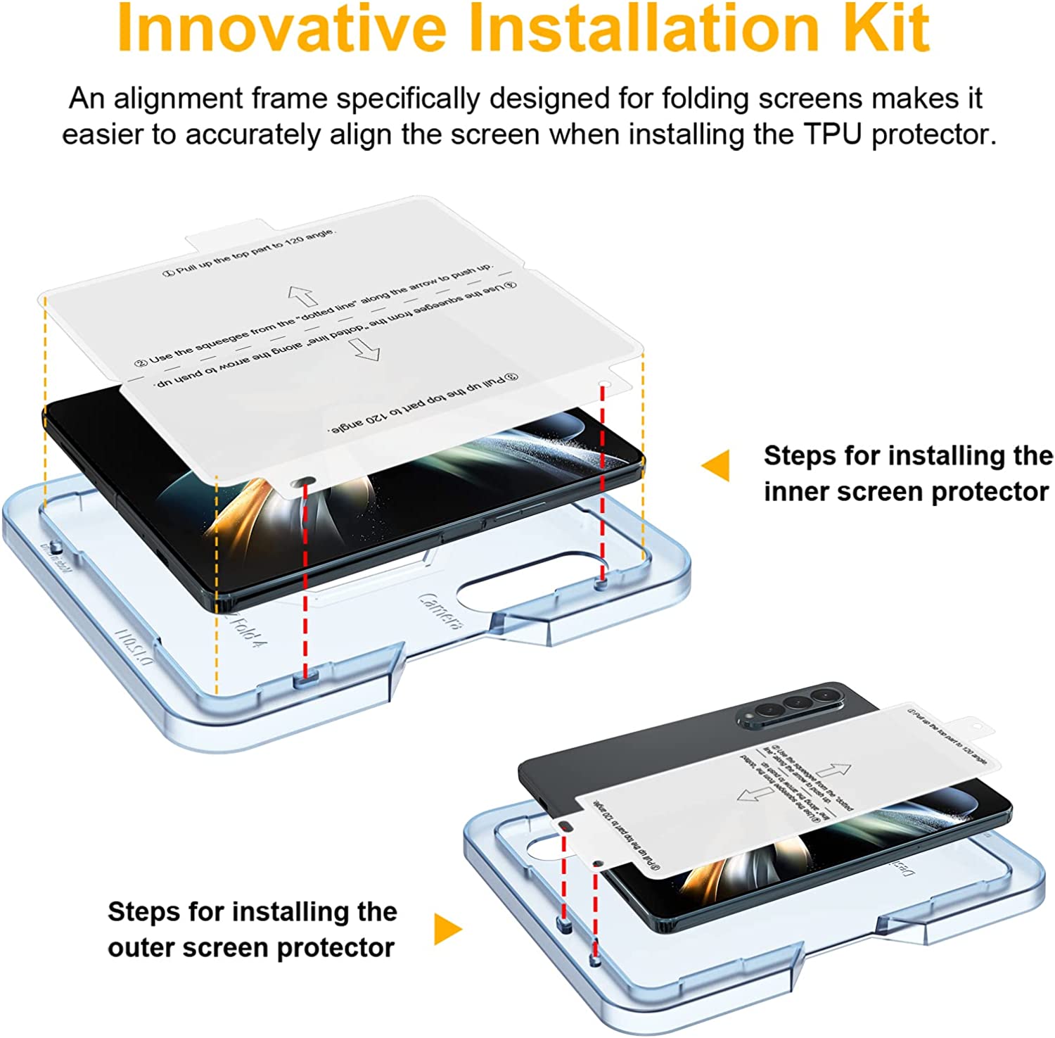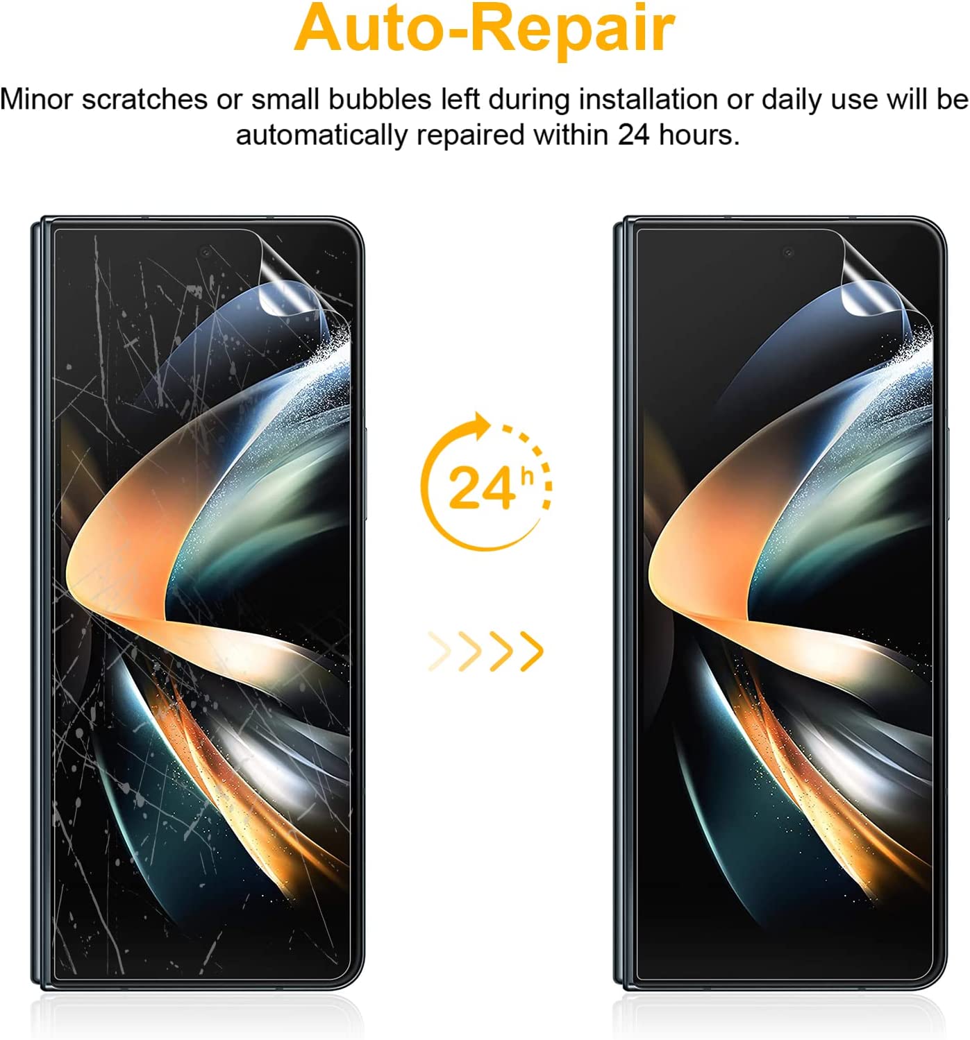 Hocents. TPU Screen Protector Compatible with Samsung Galaxy Z Fold 4 5G 2022 with Alignment Tool Touch Smooth Auto-Repair Front Film and Inside Film