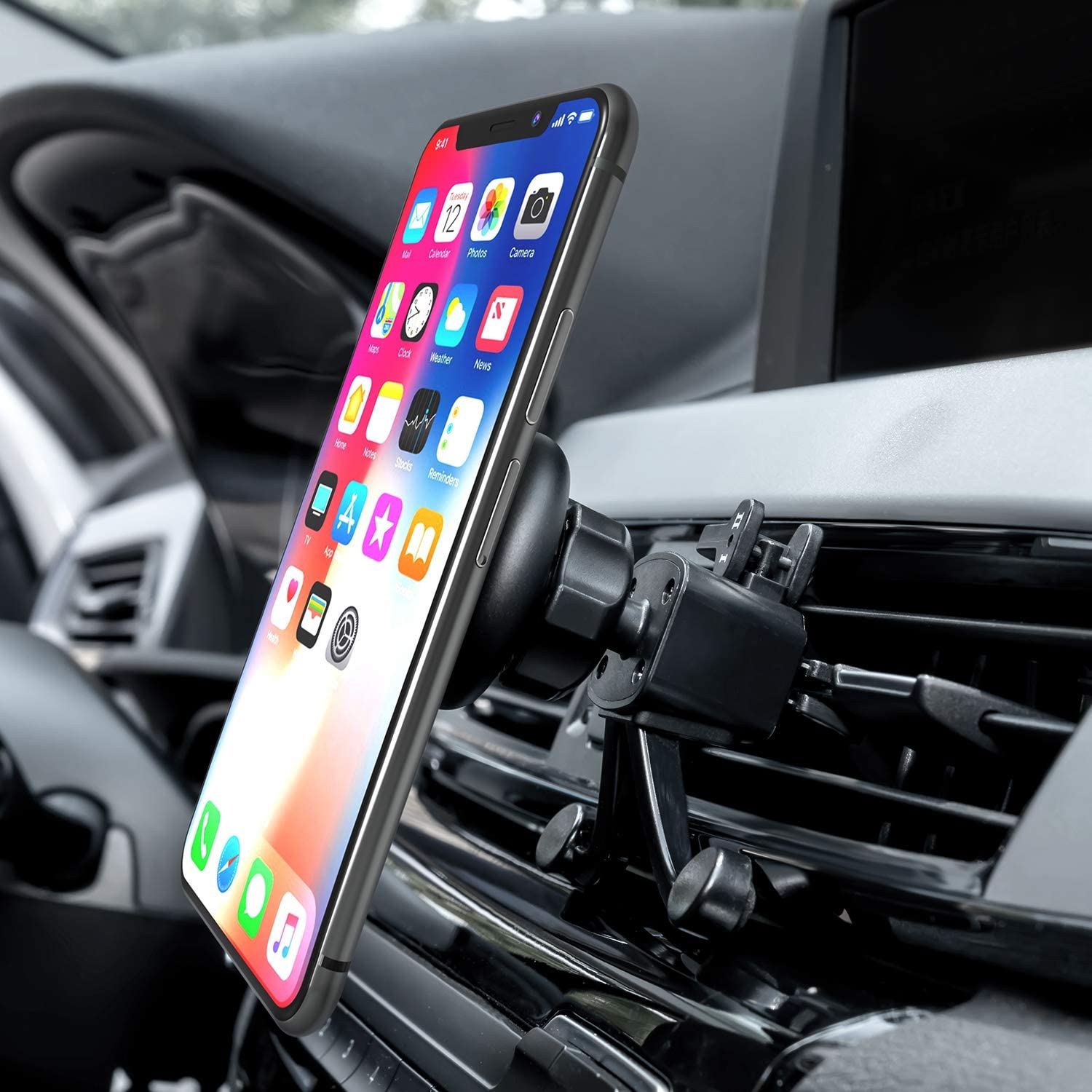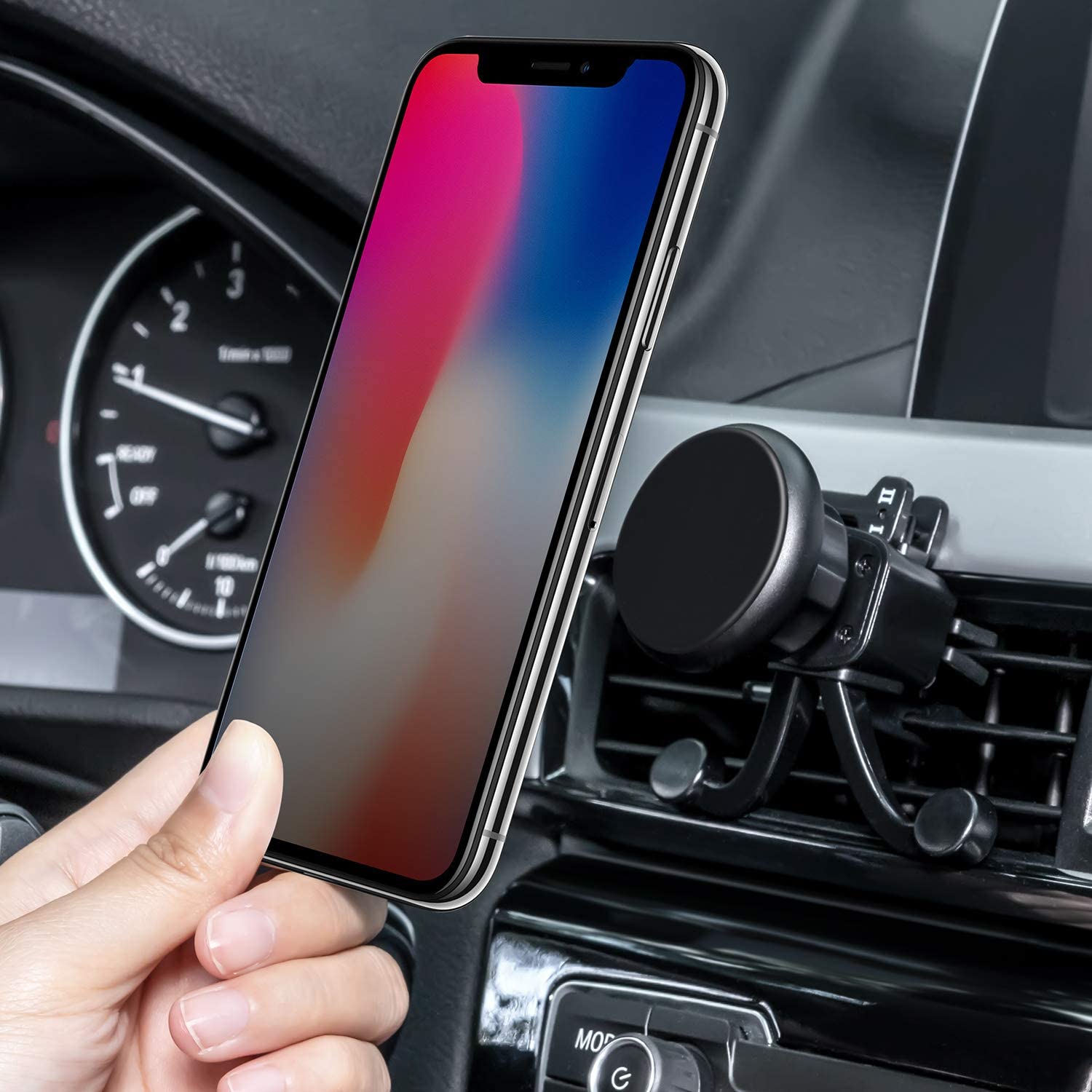 Amoner Car Phone Mount with 6 Powerful Rare-Earth Magnets, Durable Aluminium Alloy Structure, Super Sticky Suction Cup, Air Vent Phone Holder for All Phone