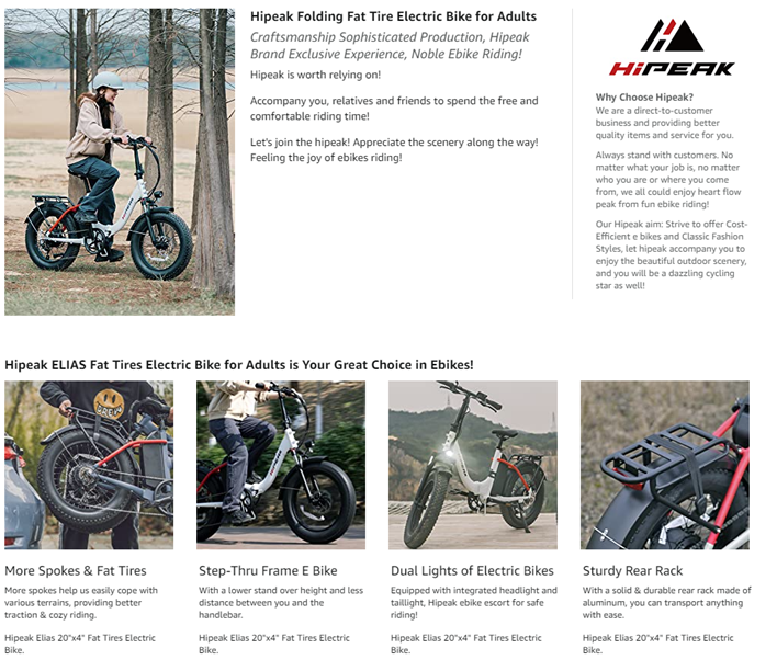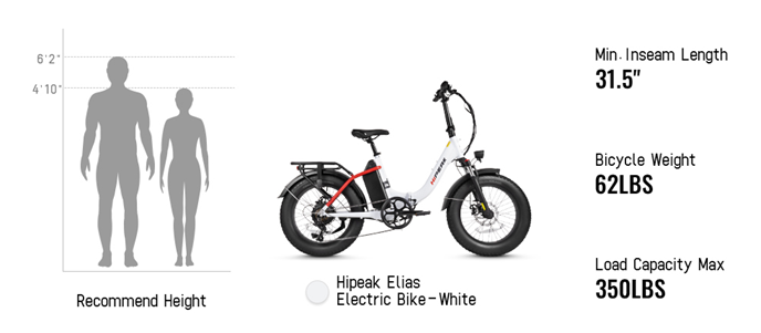 • ? FOLDING ELECTRIC BIKE & STEP-THRU FRAME: Hipeak electric bike has been mostly assembled. You only take 2 steps to fold the 62 Lbs e-bike and put it in your car. With its adjustable stem, seat, and frame, it allows most riders to ride the e-bike easily and improves overall cozy when riding on rough terrains