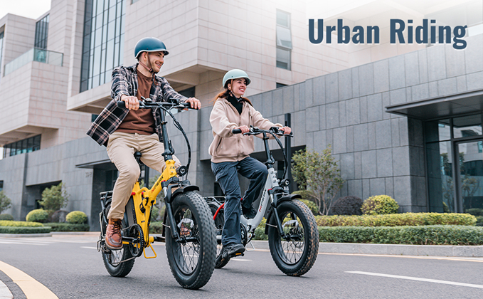 • ? 20"x 4" FAT TIRES ELECTRIC BIKE & DUAL SUSPENSION: 2023 upgraded 20"x 4" wide puncture-resistant fat tires have better performance and a cooler appearance. With an excellent suspension front fork and seat post, you could enjoy the ride comfortably on all terrains. In addition to city roads, HiPEAK e-bike can ride on snow, beaches, rugged mountain roads, and even urban jungles