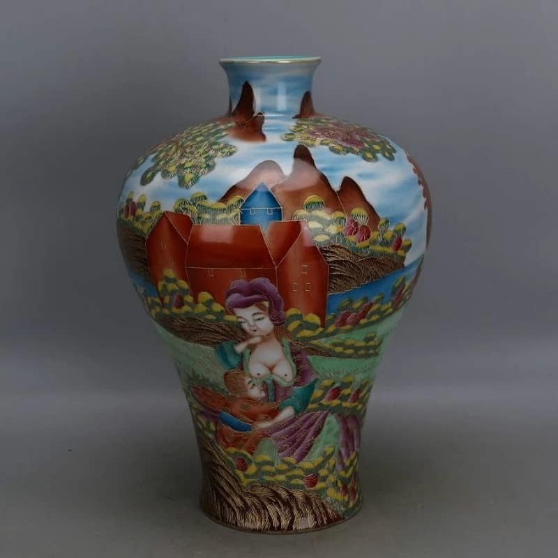 ZSEDP Glaze Vase Meiping Antique Jingdezhen Handmade Vintage Porcelain Ornaments