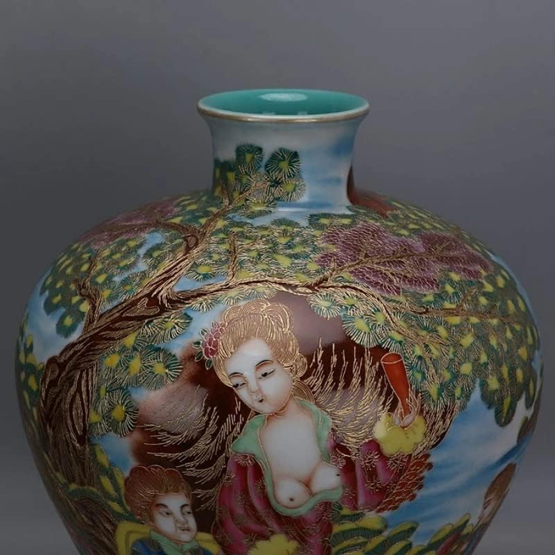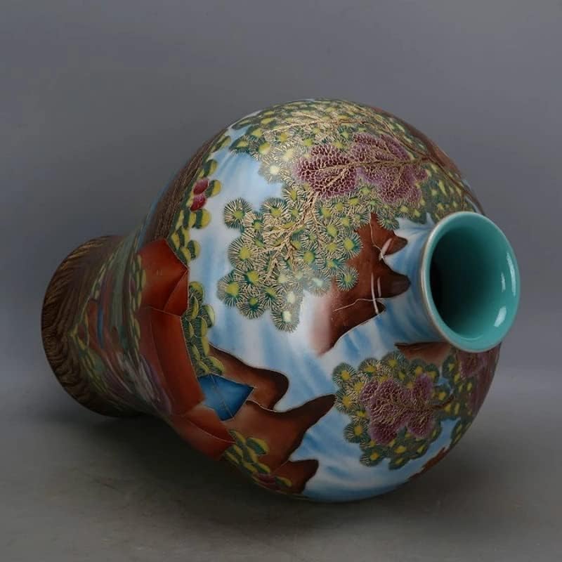 ZSEDP Jingdezhen Ceramic Antique Enamel Flower Vase Flower Arrangement Decoration Chinese Style Living Room