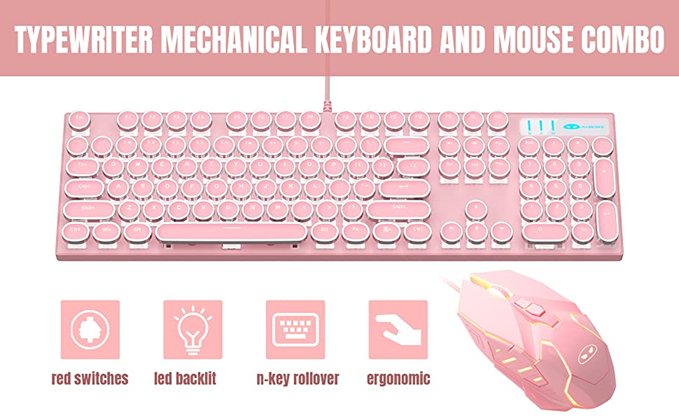 - ❤[ Both For Office & Gaming ] - With 104 anti-ghosting keys and adjustable rear feet, this cute keyboard has good performance both in office and gaming