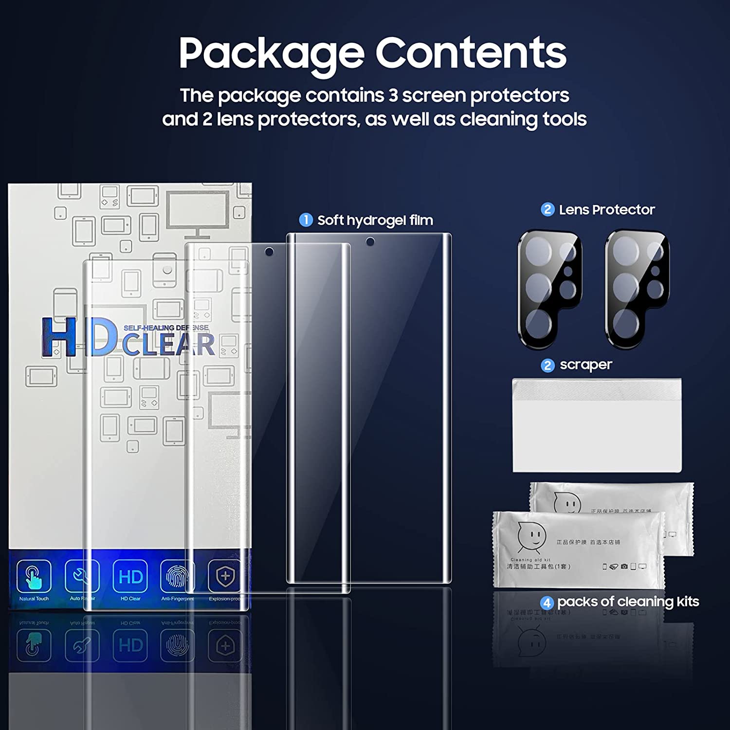 • ✅【 SCOPE OF DELIVERY】 3pcs Galaxy S23 Ultra Screen Protectors, 3*cleaning kit, 2*Galaxy s23 ultra lens protector, 1*scratch card. If you encounter any problems after receiving the product, please contact us via Amazon mail. Will provide you with a solution within 12 hours.