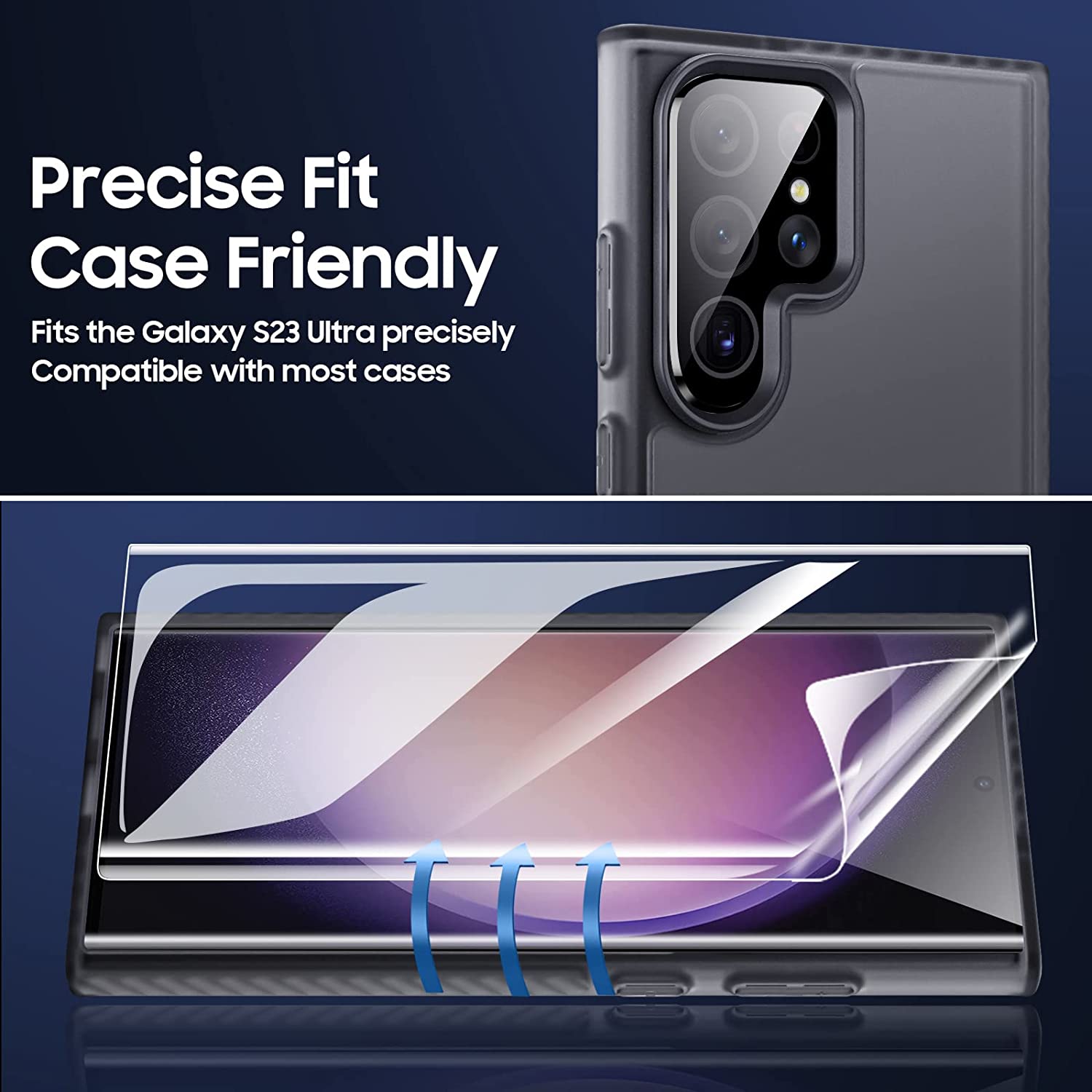 • ✅【FAST FINGERPRINT IDENTIFICATION】High touch sensitivity for "true touch", supports ultrasonic screen fingerprints, the phone is responsive, and has extra space around the bezel so that the case wraps around the edge of the Galaxy s23 Ultra without interfering with the screen protector and camera lens protector, compatible with most cases.
