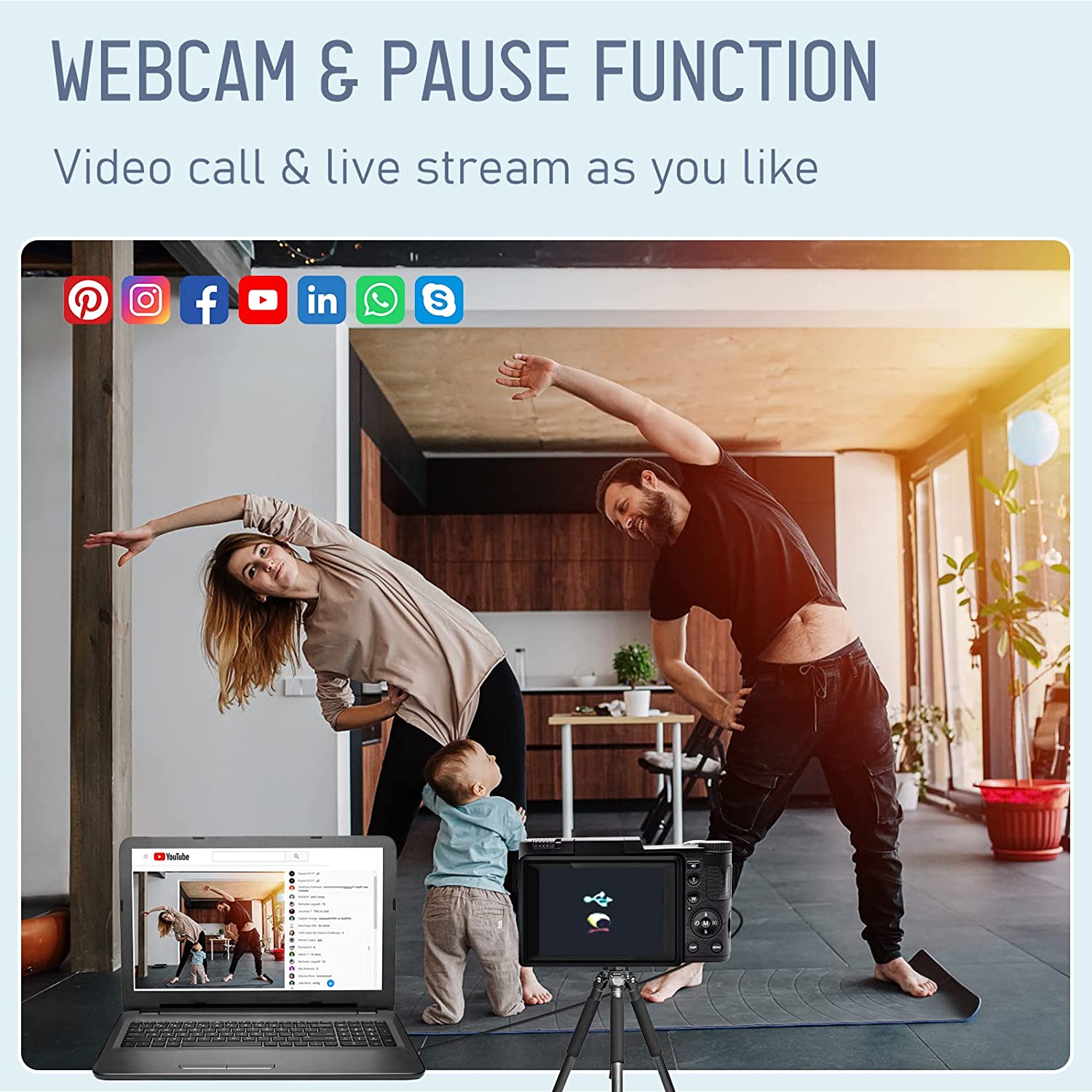 • 【Webcam Function with 180 Degree Flips Screen 】The vlogging camera can be used as a Webcam by connecting it to your computer, easy to stream directly to YouTube, Twitter, Ins or FB (supports MAC/Windows). 180 degree flips screen provide a good chance to selfile.