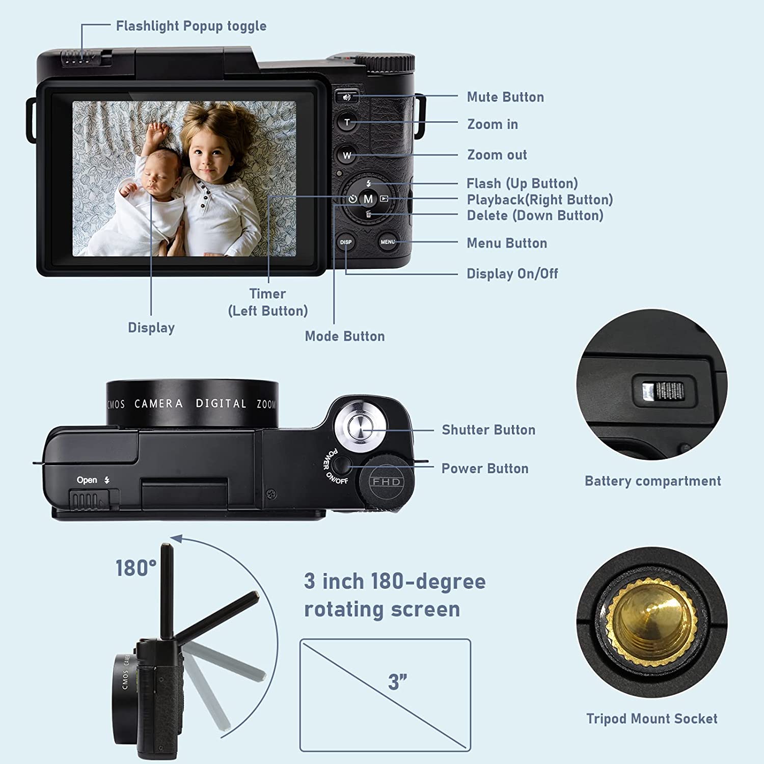 • 【Beginners Camera Perfect Gift】 This portable pocket digital camera is prefect gift for your families, kids, friends, such as Children’s Day, Birthday, Christmas Gift. It a good choice for a beginner, you can enjoy photography time with this camera.