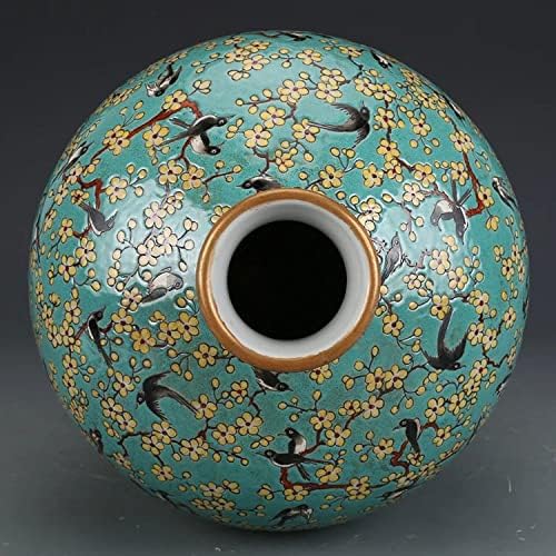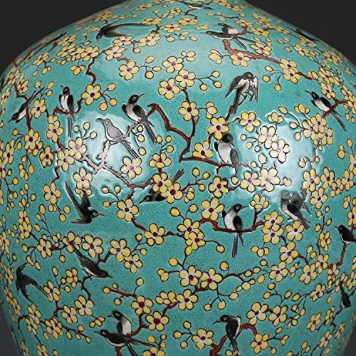 MJWDP Hand-Painted Green Pastel Rose Magpie Plum vase Antique Porcelain vase