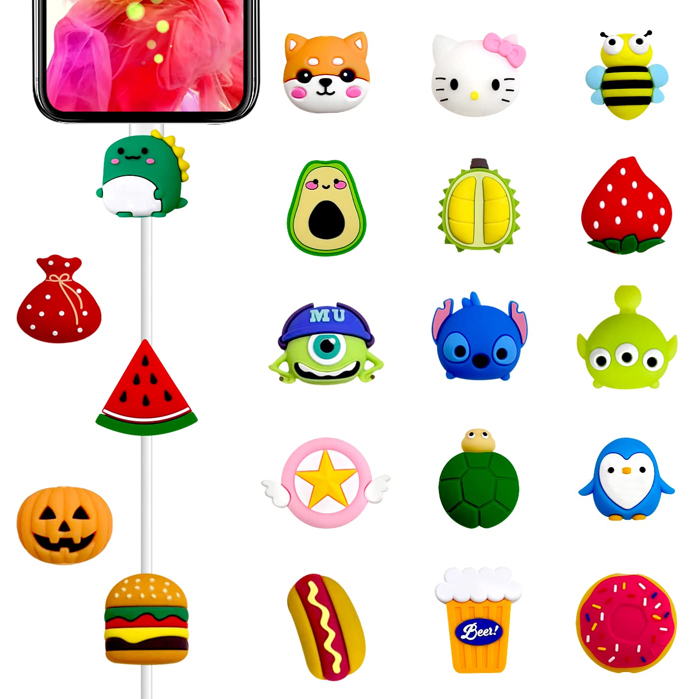 Cute Cable Protector for iPhone iPad Charger Cable, 20pcs Cartoon Cable Animals Fruit Bite Charging Protector, USB Charger Cord Protector, Charger Cable Saver Phone Accessory (Type A - 20 styles)
