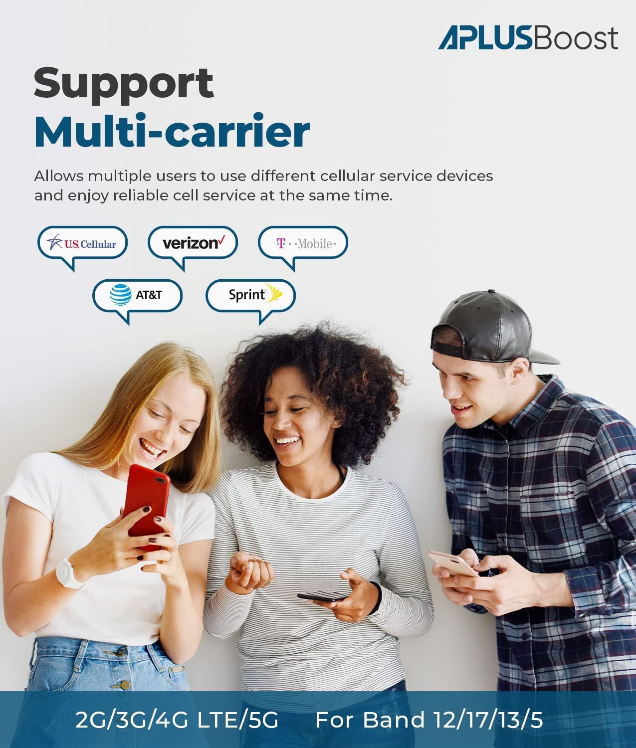 Cell Phone Booster for Band 12, 17, 13, 5. Support-Verizon, AT&T, T-Mobile & More, Cell Phone Booster for Home and Office Boosts 2G 3G 4G LTE 5G Signal, Cell Booster Up to 3,000 Sq. Ft.