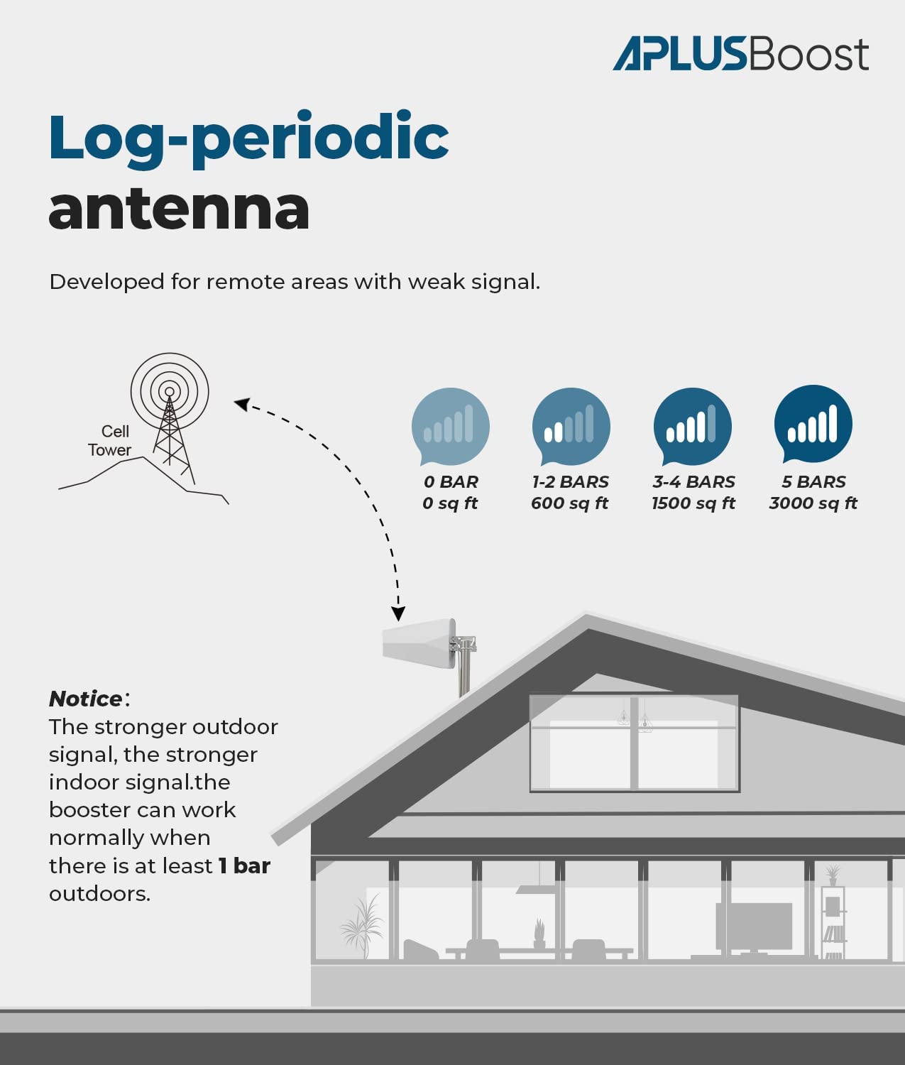 • 【Stable & Broad Coverage】Gain up to 65 dB. Provides enhanced cellular reception for up to 2-3 rooms; High quality log-periodic is more stable, allowing everyone to enjoy fewer dropped calls, better voice quality, and faster data speeds within its coverage area.
