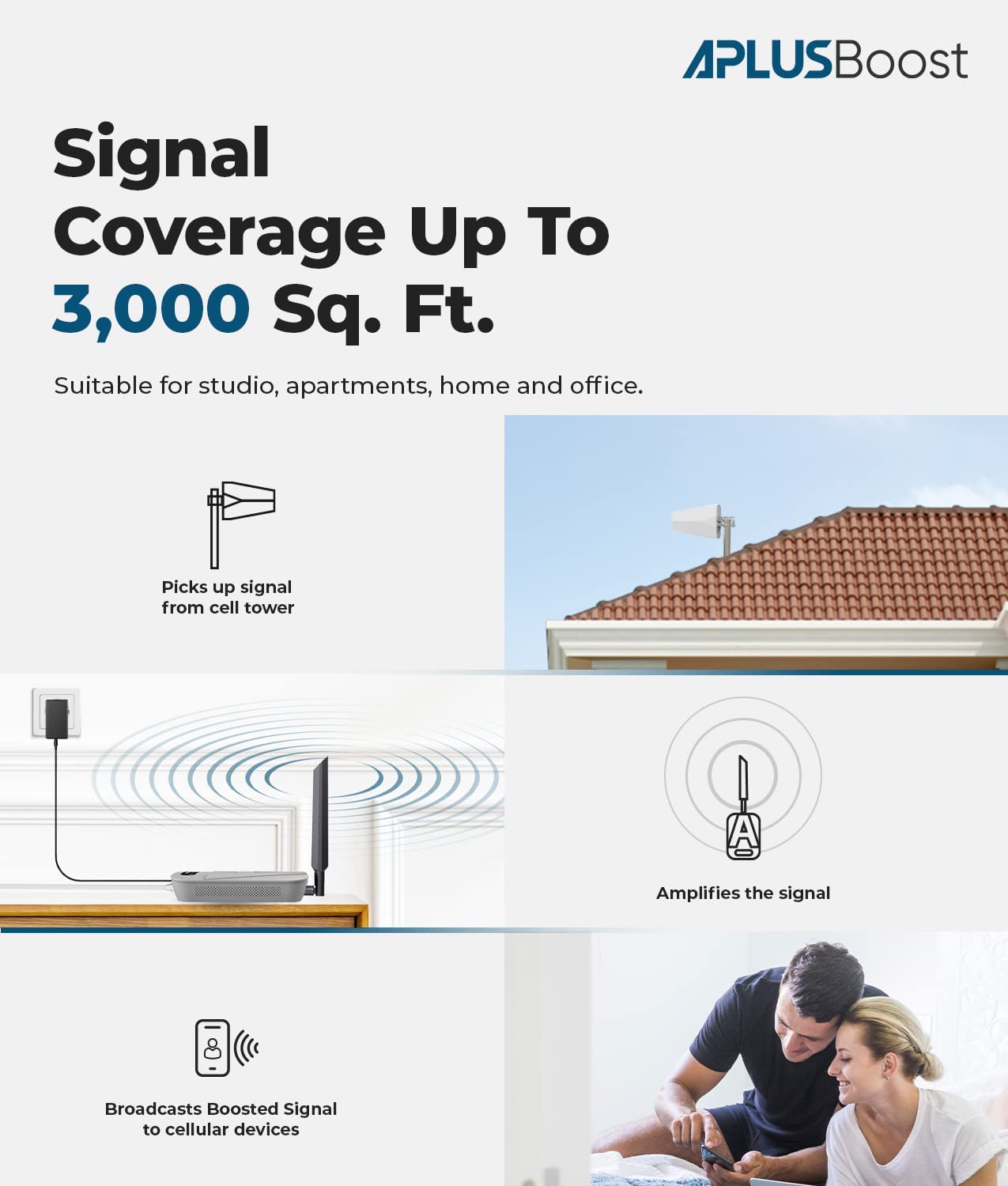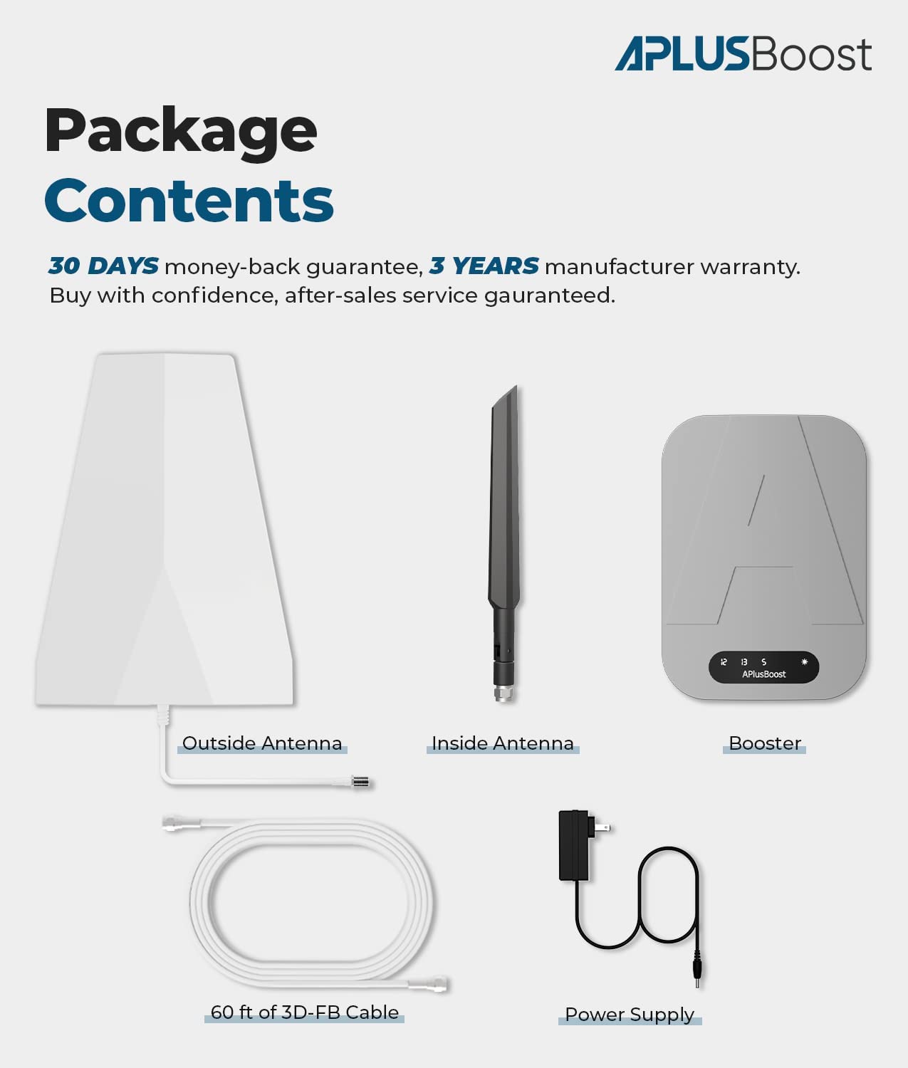 • 【3-Year Guarantee & One-Time Cost】APlusBoost cell phone booster for home with 30-day money-back guarantee and 3-year manufacturer warranty,no subscription costs or hidden fees.Considerate customer service covers every step of your installation and after-sales, provids your home with long-lasting coverage.