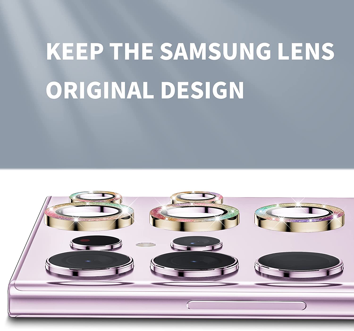 • Space titanium alloy + 9H tempere glass materials more wear-resistant and stronger, High picture quality and Light enough, will not affect the phone pixels, Full coverage design, prevent dust from entering the S23 ultra camera lens gap.