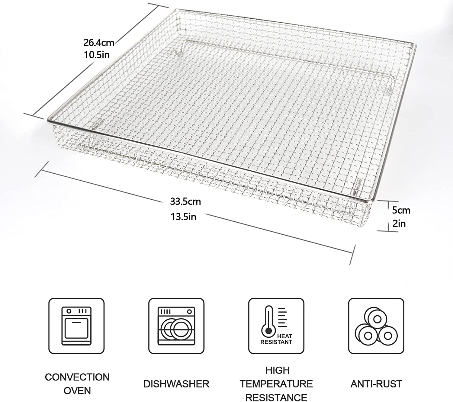 • ?【Practical Design Concept】The sturdy fence design structure can protect your food from accidentally falling due to a slight tilt. The hole spacing is reasonable, and the wavy wire mesh design is adopted to prevent food residue from sticking and is suitable for a wide range of food types.