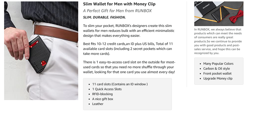 Lifetime Guarantee - We attached great importance to the quality of the bifold wallet and provide a lifetime warranty. Should you have any quality problems with RUNBOX credit card wallet, you can contact us and get a 100% refund. We’ll respond within 24 hours.