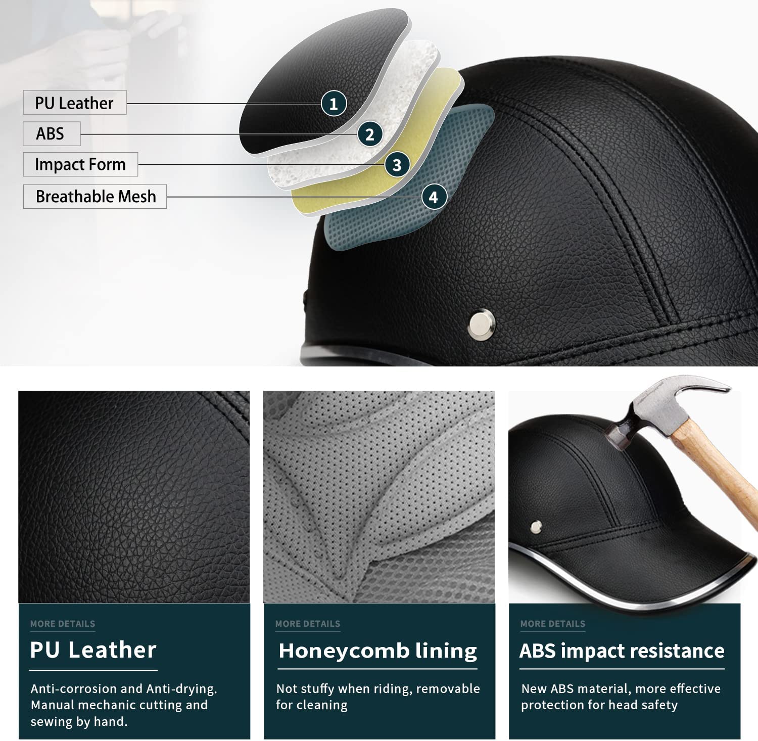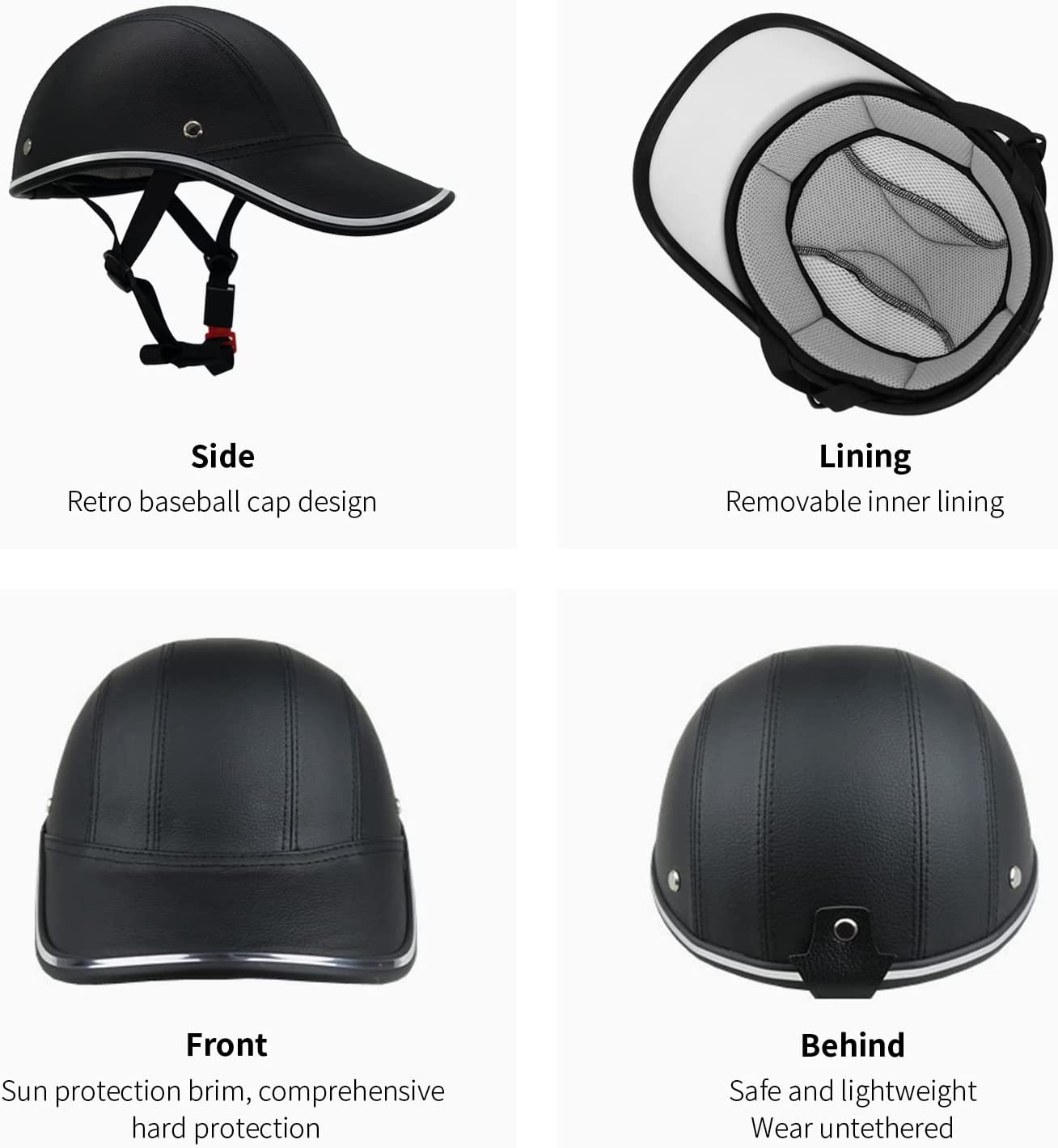 • Urban Style, Well Crafted by Hand Made: Cute shape, baseball cap style, unique old school design. Nice leather is mounted on the helmet by hand