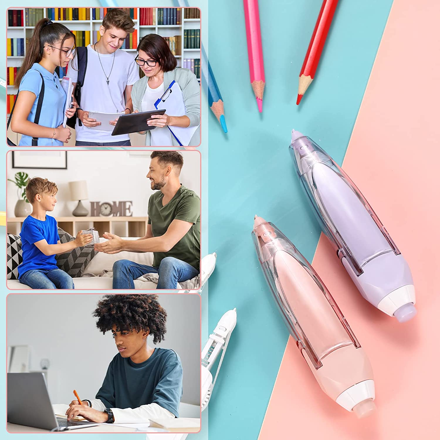 • Retractable and Flexible: the correction tape pen is designed with retractable function, easy to use and keeps pencil case clean; With replacement tapes, easy to replace, press the both sides to remove the cover, take out the replacement tape, install it back and put on the cover
