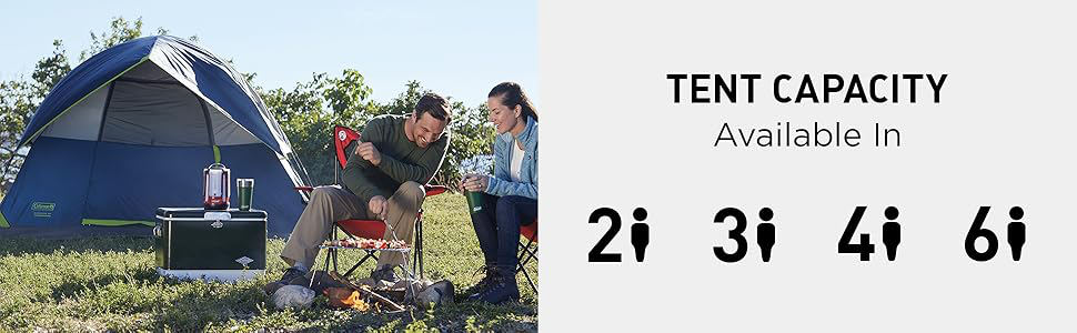 Coleman Sundome Camping Tent, 2/3/4/6 Person Dome Tent with Easy Setup, Included Rainfly and Weathertec Floor to Block Out Water, 2 Windows and 1 Ground Vent for Air Flow with Charging E-Port Flap
