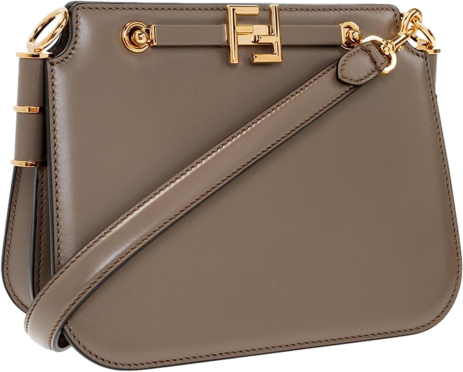 FENDI Touch Taupe Leather Shoulder Bag 8BT350