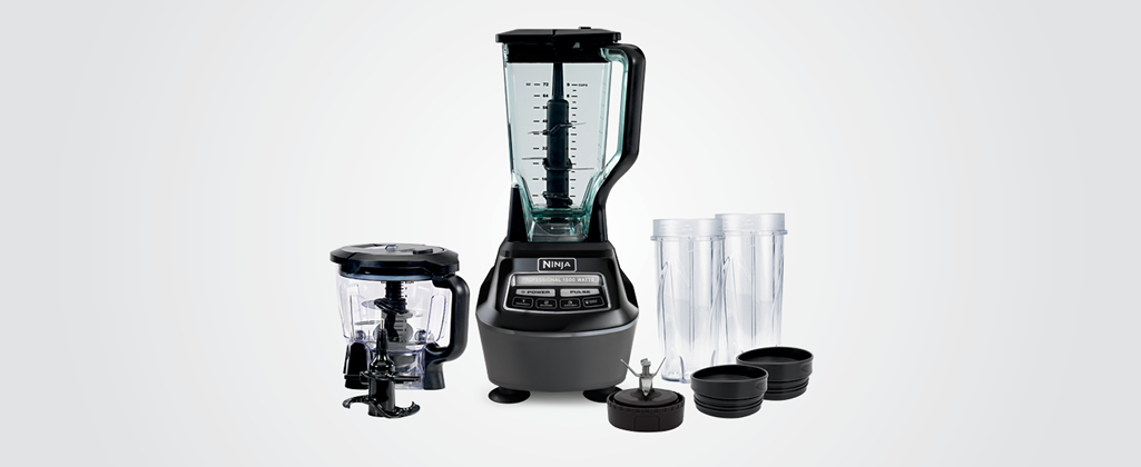 The Ninja mega kitchen system comes packed with 1500 watts of power to handle all of your drink and meal making needs. The XL 72 oz. blender pitcher features total crushing technology to blast through ice and frozen fruit. Two 16 oz. Nutri Ninja Cups with to go lids are perfect for creating personalized, nutrient rich drinks to take on the go. The 8 Cup food Processor bowl comes equipped with a chopping blade for perfect, even results and a dough blade that can mix up to 2 lbs. Of dough in 30 seconds.