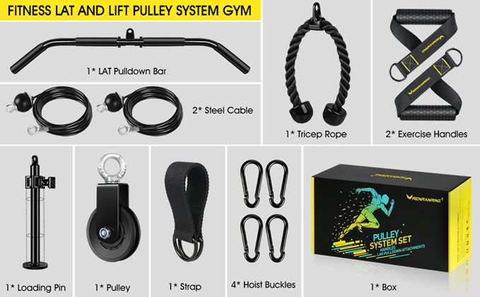RENRANRING gym pulley system is designed for fitness enthusiasts who want to keep a regular practice on physical strength and muscle workout at home.
