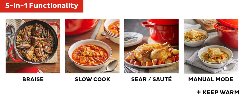 - 5-in-1 FUNCTIONALITY: Braise, slow cooking, sear or sauté, cooking pan and warmer, making it the perfect wedding gift, new home gift or bridal shower gift!