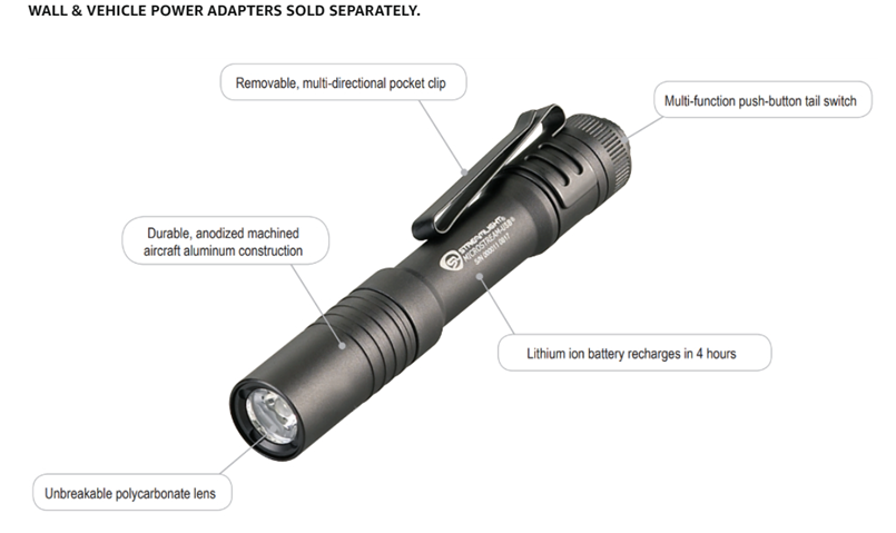 Streamlight 66604 MicroStream 250-Lumen EDC Ultra-Compact Flashlight with USB Rechargeable Battery, Box, Black