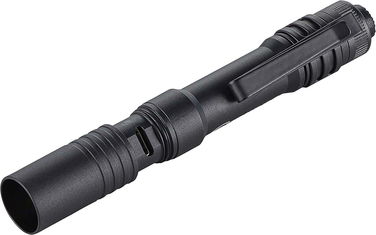 The Microstream USB is a compact Lithium-ion battery-powered flashlight designed for use in all markets. It features a tail cap switch, momentary or constant on operation, high and low beams, a combination pocket/hat clip for convenience, and amazing brightness and run time for a light of its size and price. The aluminum housing with Type II Military Spec anodizing helps make the light extremely durble and abrasion resistant. To charge the light, slide the head cover forward to expose the micro USB port.