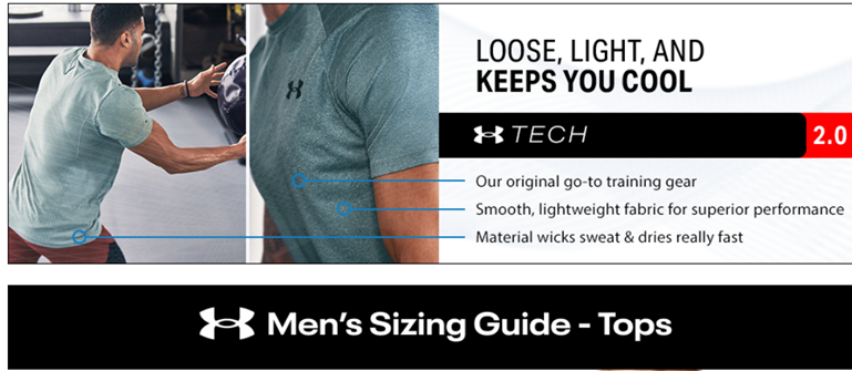 • UA Tech fabric is quick-drying, ultra-soft & has a more natural feel