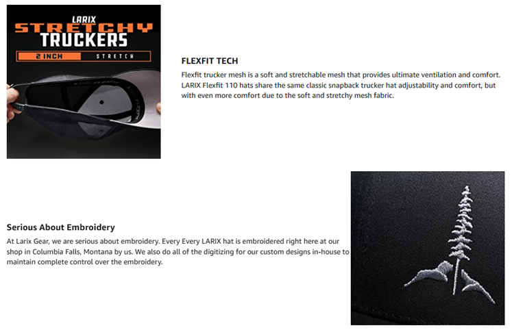 At Larix Gear we are serious about embroidery. Every Larix hat is embroidered right here at our shop in Columbia Falls Montana by us. It's our highest priority to achieve outstanding results by using the most advanced sewing technology and techniques available today. We have chosen Pacific Headwear 104c Richardson 112 and Yupoong 6606 models as our base trucker hats for the Larix designs. We believe these hats represent the best snapback mesh back adjustable retro trucker hats available anywhere. They are very similar to each other in quality fit shape and size. By using these models we can offer a better range of color options and in-stock availability. Not only are we committed to beautiful artwork clean stitching and crisp hats but we also painstakingly remove every visor sticker and more importantly the glue left behind. After removing the visor sticker as well as the glue we brush each hat and use forced air to remove any thread or contaminants that have hitched a ride during the manufacturing process. Then we wrap your Larix hat in tissue paper before placing it in our custom box to keep it clean and safe during its long journey to you. You will immediately understand the level of care and craftsmanship put into your Larix hat upon receiving and opening your box.