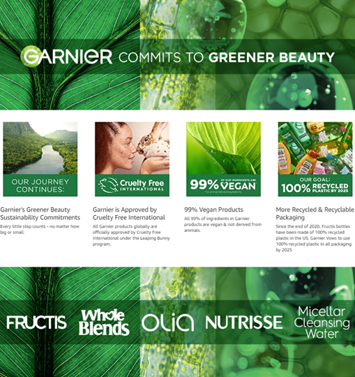 - Garnier is committed to Greener Beauty - our bottles excluding pumps and caps are made of 95% Recycled Plastic