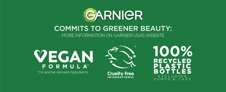 • Garnier is committed to Greener Beauty - our bottles excluding pumps and caps are made of 100% Recycled Plastic