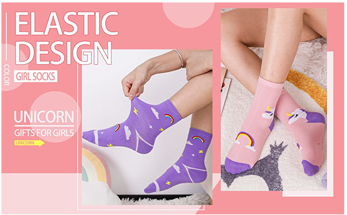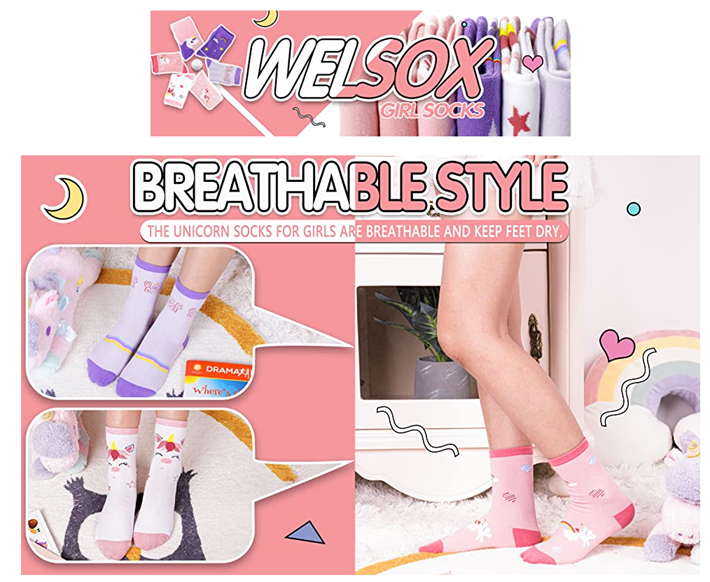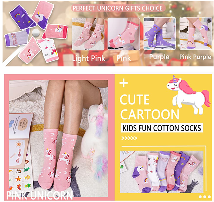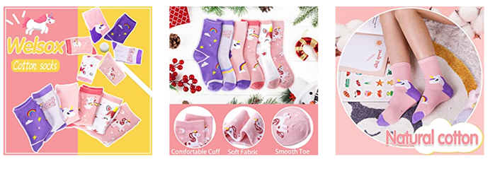 WELSOX Unicorn Socks Gifts for Girls kids Cute Animal Fun Crew Fashion Funny Novelty Soft Cotton Socks 6 Pairs