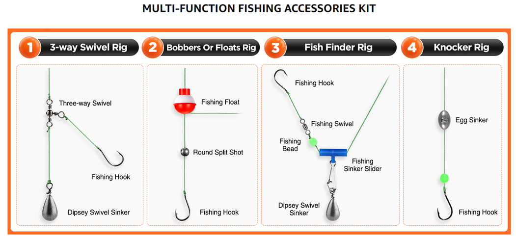 • 【Widely Usage Fishing Set】- Abundant accessories in the tackle box, to put together a variety of fishing rigs you want, such as Fish Finder Rig, Blinding Sinker Rig, and Bobbers rig. Which work great for both saltwater and freshwater, perfect for all water layers! Meet all you need for different fish you catch, such as Bass, Bluegill, Crappie, etc. This complete assortment of fishing accessories kit is suitable for any angler in any season in any water!