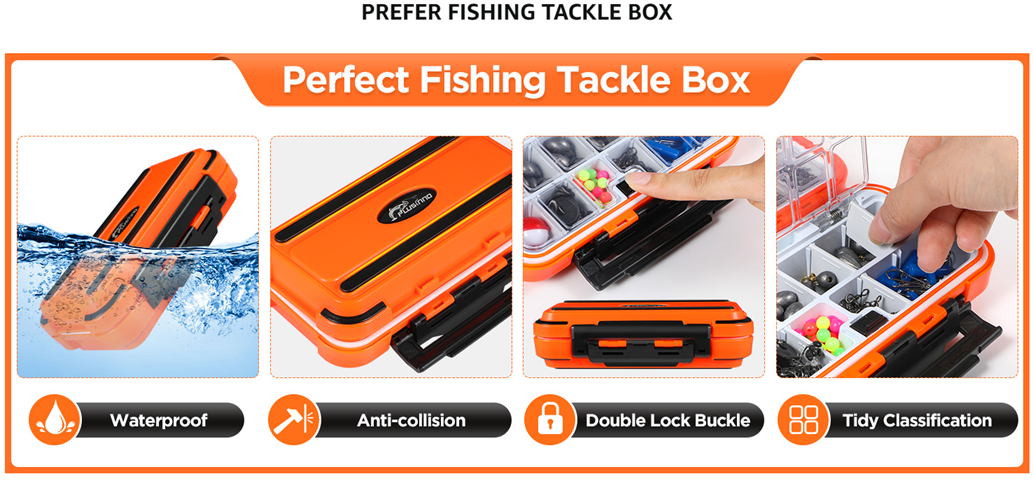 • 【Compact & Organized Tackle Box】- The box is made of heavy-duty plastic, with an anti-collision shock-absorbing strip, and a high-strength lever-type edge lock, super sturdy and durable! Internal transparent lids, anti-open lock buckle, and adjustable compartments make all items well sorted storing easy identification and access. Plus, the perfect small size (6.3" x 3.7" x 1.8") makes it easily fits in your fishing seat box or backpack, take it around and enjoy fishing anywhere.