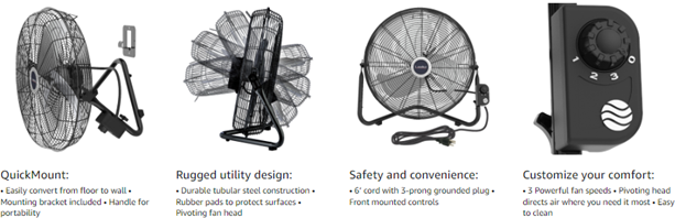 Recommended Uses For Product | Cooling, Ventilating, Air Circulation |