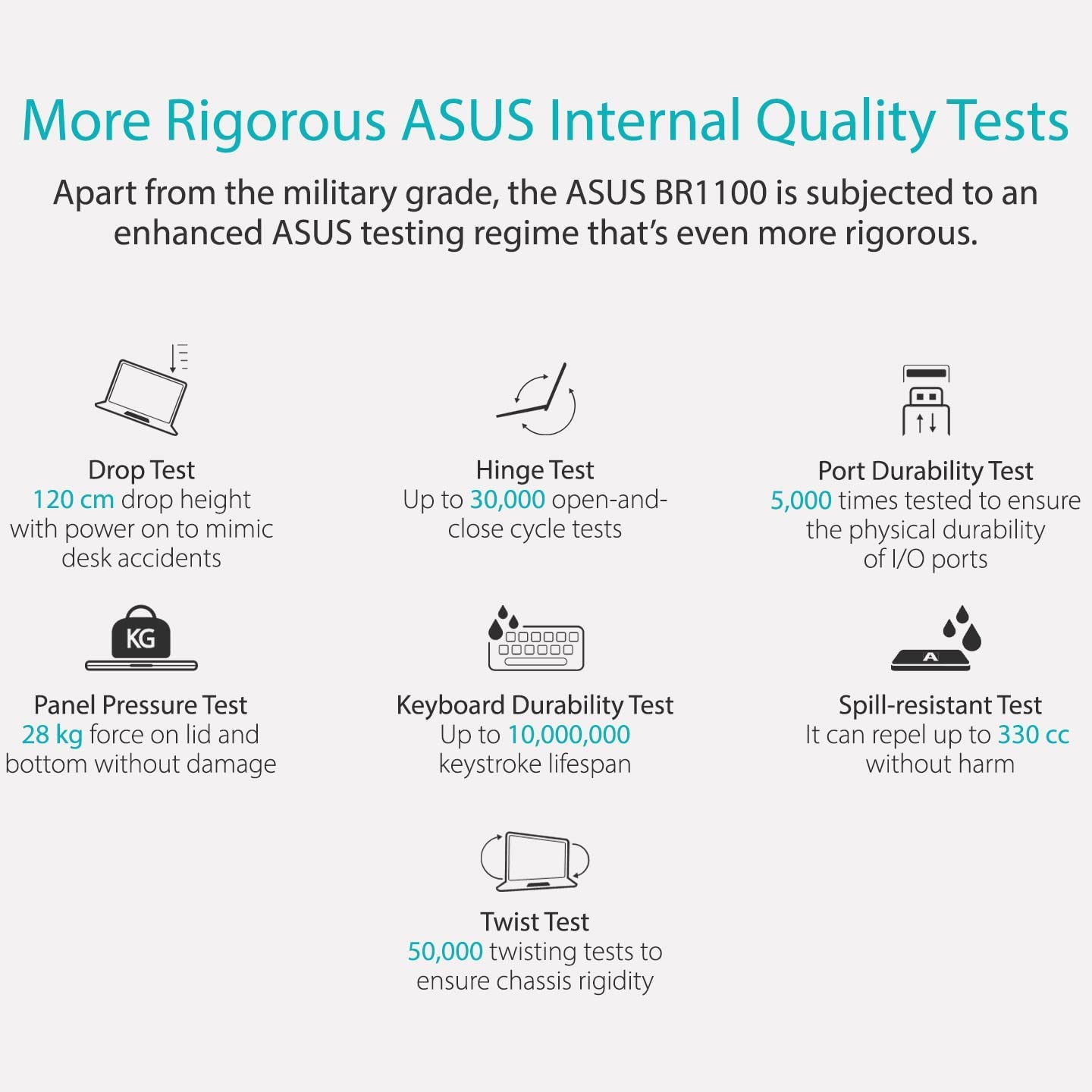 Servicing laptops for education can be a lengthy process with costly fixes and slow turnaround time for school operations. The ASUS BR1100 is built in a modular design with retained screws to mitigate lost time and equipment pieces. Its military-grade durability will help battle against daily rigors that can occur inside and outside of class.