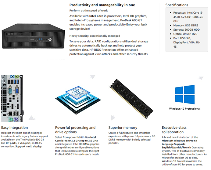 • HP 600G1 Intel I5 Quad-Core 3.2 GHz Processor