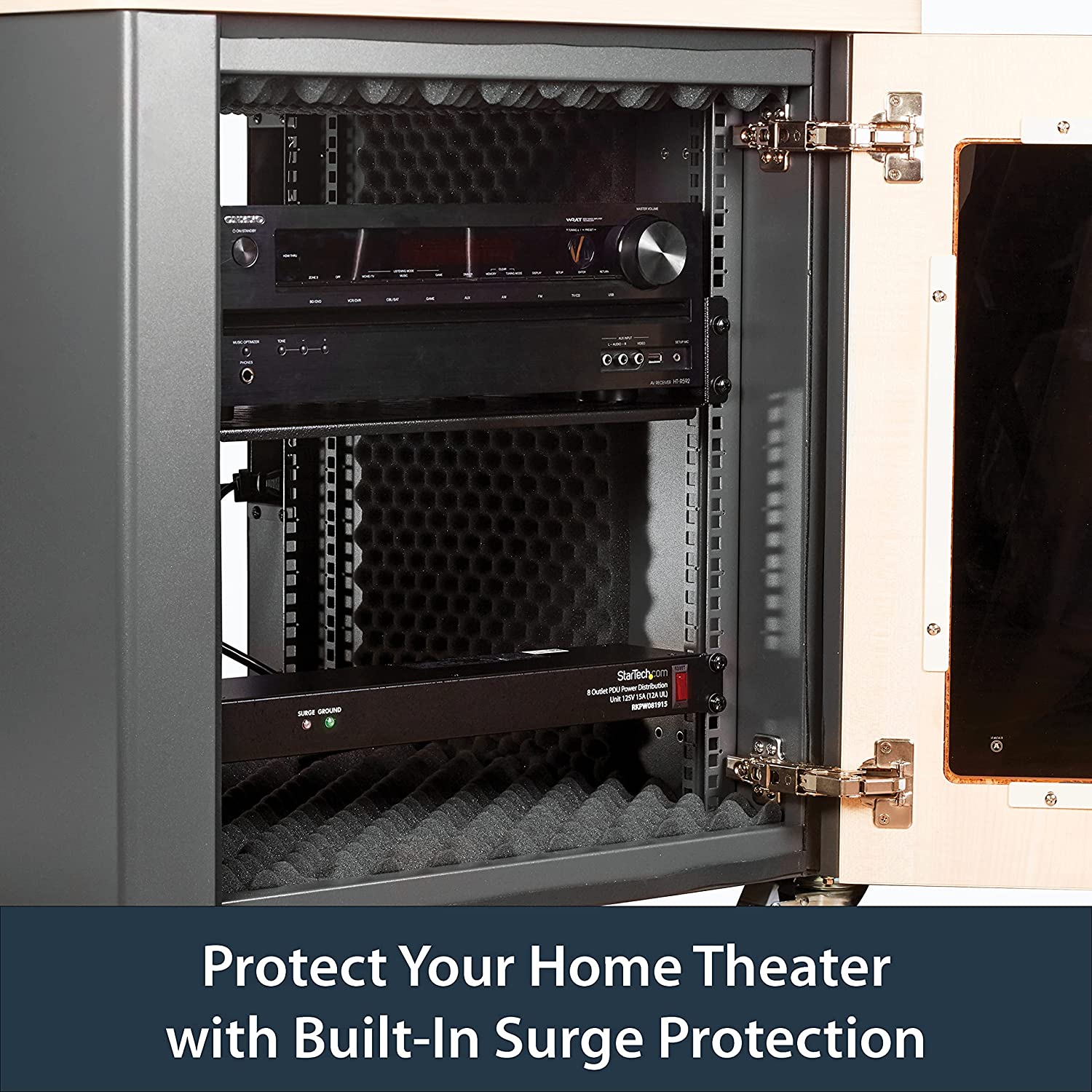 The Horizontal Rack Mount PDU delivers a cost-effective power distribution solution for your server rack or cabinet with 8-outlet (120V/15A). Hassle-Free Equipment Installation the 1U switched PDU strip can be mounted horizontally in any server rack 4 inches deep or greater, to supply eight 120V/15A power ports/outlets, and features a rugged steel casing to ensure maximum durability. Protects your equipment the front of the surge protector features two LEDs to indicate proper ground and surge detection while enabling you to control the power state with an illuminated power/reset switch. To prevent costly breakdowns of connected devices, the rack mount PDU features a built-in circuit breaker and reset switch, ensuring dependable performance of vital data center equipment. This unit is backed by a lifetime warranty with free technical support.