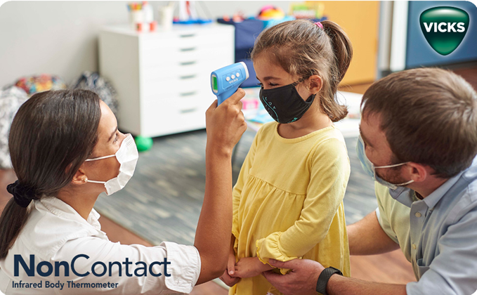 • NON-CONTACT THERMOMETERS – This Vicks Infrared touch free thermometer allows you to take clinically accurate, reliable readings without waking a sleeping child. You can measure temperatures on the forehead, bath water or food.