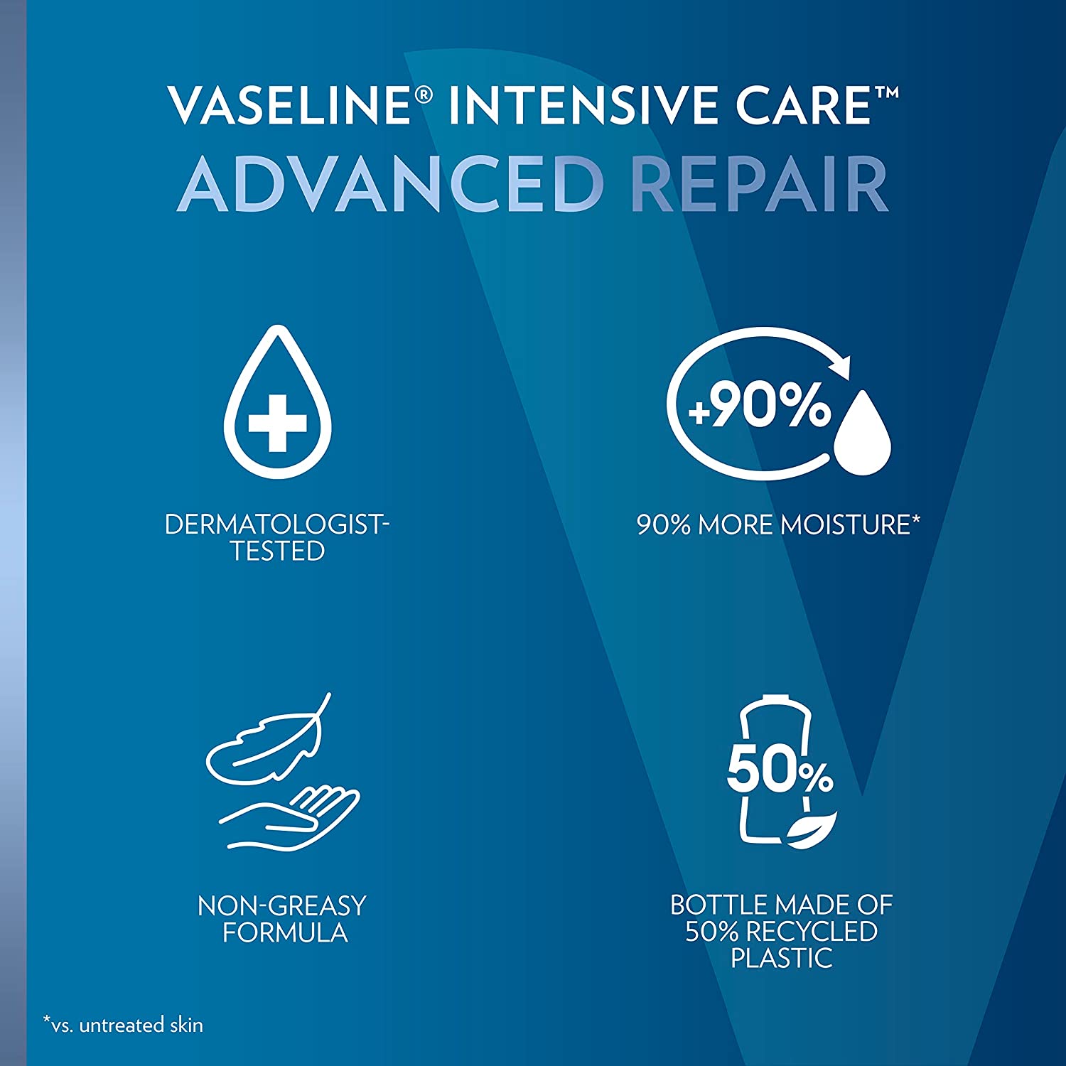 Vaseline Intensive Care Advanced Repair Lotion, with Ultra Hydrating Lipids and Vaseline Jelly, moisturizes and repairs extremely dry skin. This body moisturizer is clinically tested to provide 90% more moisture (vs. untreated skin).