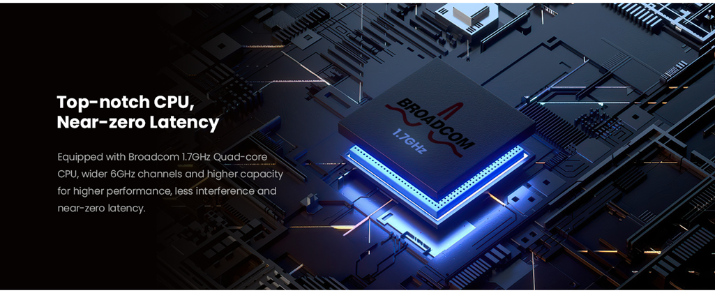 RX27 Pro is a Gigabit Wi-Fi 6E router designed for users who are looking for a performance experience. It supports Wi-Fi 6E, which can bring more bandwidth, faster speed, and near-zero latency. It has a concurrent rate of up to 5665 Mbps (6GHz: 2402 Mbps, 5GHz: 2402 Mbps, 2.4GHz: 861 Mbps). Besides, RX27 Pro is equipped with 7 high-power FEMS, the Wi-Fi signal penetrates the wall stronger and the transmission distance is longer. And It's equipped with Broadcom 1.7GHz quad-core CPU, delivering powerful computing power, and stable operation. With the OFDMA and MU-MIMO technology, more devices can access the Internet at the same time, the transmission efficiency is significantly improved, and the delay is greatly reduced.