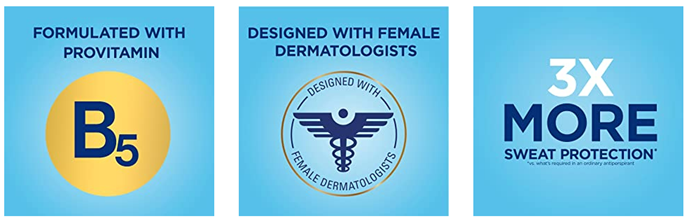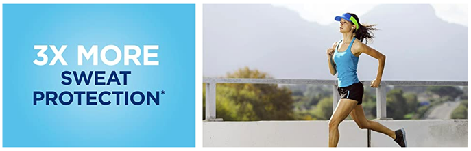 • 3X* Stress Sweat Protection (*vs. the wetness protection required of an ordinary antiperspirant)