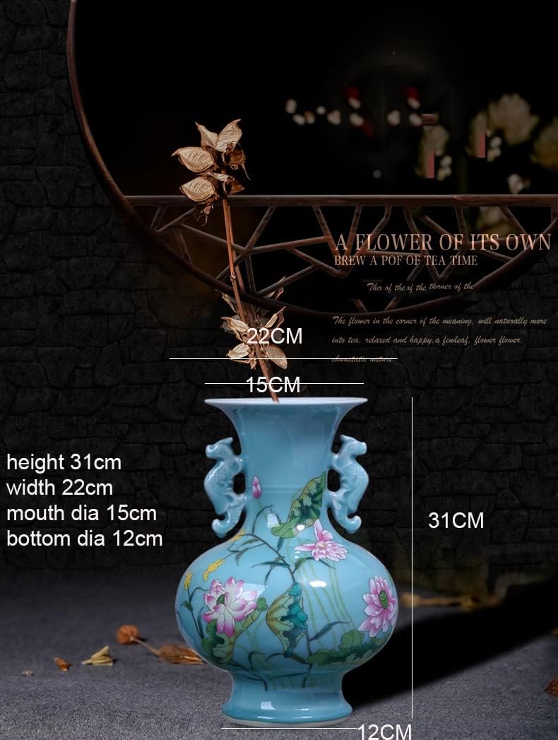 ZSEDP Jingdezhen Ceramic Antique Enamel Flower Vase Flower Arrangement Decoration Chinese Style Living Room